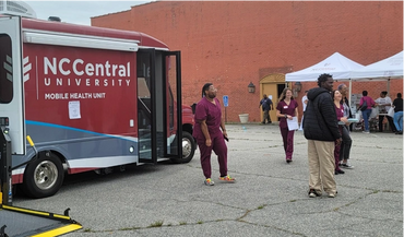 Through our partnership with NCCU, we leverage mobile health units to meet communities where they are and offer a range of health promotion programs focused on health education, vaccination, health screenings etc. We have two ADA compliant mobile health units,  equipped with an exam room, phlebotomy station, cold storage for carrying supplies and  telehealth capabilities.